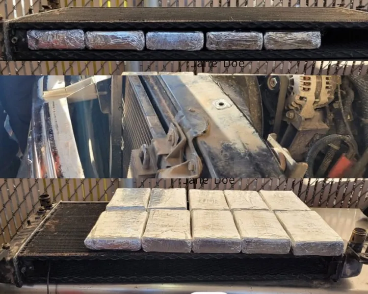 Durante la extracción de los paquetes, los agentes migratorios descubrieron que el radiador fue rellenado con la droga.