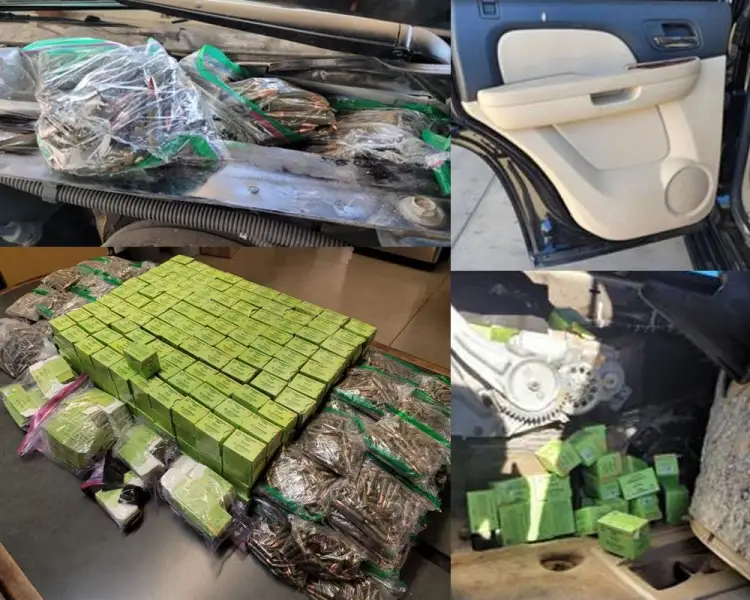 Dicha autoridad confirmó que se trató de un total trece mil 460 cartuchos útiles para diversos calibres, mayormente para rifles de asalto, los cuales fueron extraídos del interior de los paneles, de la pared del motor y de una de las puertas de un vehículo.