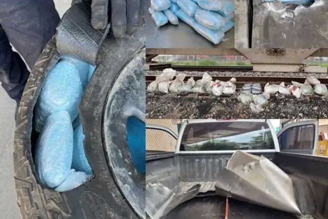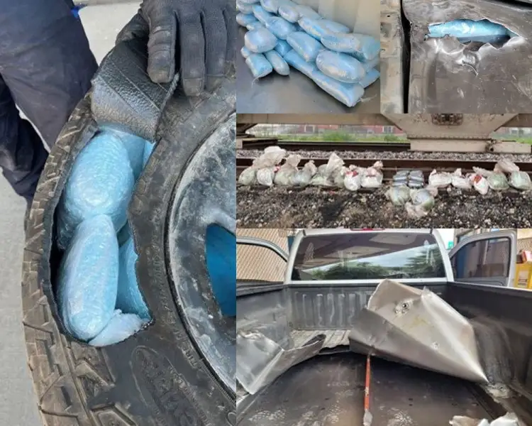 Un día después, agentes del CBP descubrieron los otros tres cargamentos: Uno de 331 mil 650 píldoras azules dentro de un neumático de refacción; 33 kilos de metanfetaminas escondidos en varios lugares de un vehículo, así como 135.6 kilos también de metanfetaminas, en un espacio hueco de un furgón granero del ferrocarril.