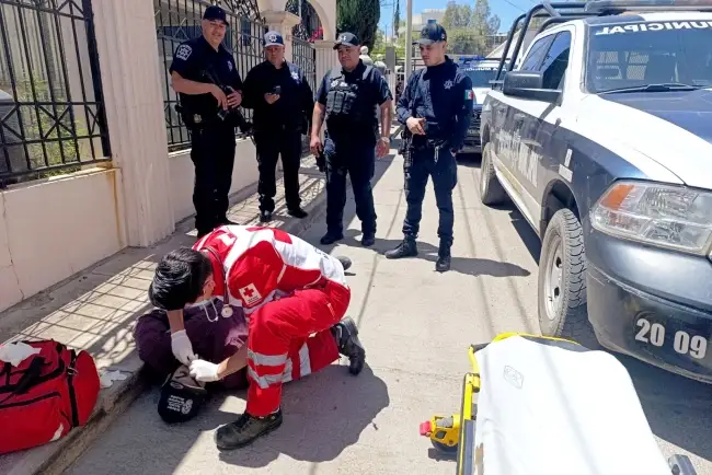 Elementos de la Policía Municipal acudieron al lugar junto con paramédicos de la Cruz Roja quienes de inmediato iniciaron con las atenciones a la persona.