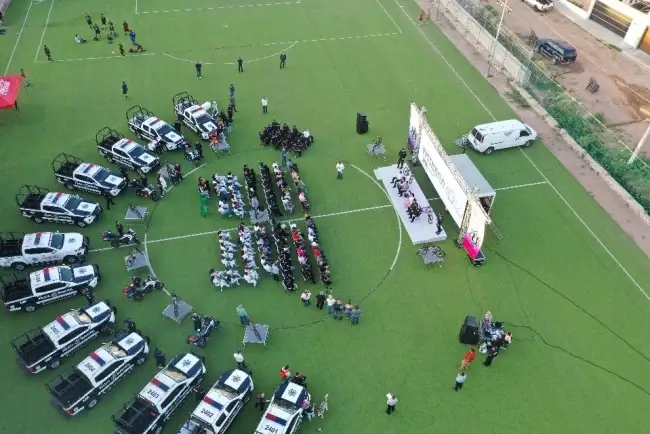 El alcalde Francisco Gim Nogales entregó 12 patrullas y cinco motocicletas equipadas así como 12 bicicletas completamente nuevas y más de 500 uniformes de primera calidad para los elementos, equipo que vienen a reforzar de manera histórica el parque vehicular de Seguridad Pública de esta frontera en una ceremonia llevada a cabo en las instalaciones de la unidad deportiva de Los Virreyes.